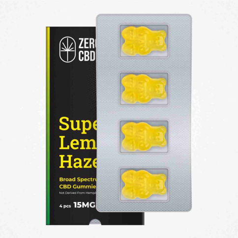 BROAD SPECTRUM CBD GUMMIES - SUPER LEMON HAZE- 4 Pcs Zero CBD- Broad Spectrum CBD Gummies Cannabidiol (CBD) gummies are a form of CBD edible. Consuming gummies and other edibles can be an easy, tasty, and discreet way of ingesting CBD. Some common reasons for taking CBD include managing pain and seeking relief from anxiety or depression. Zero CBD- CBD infused broad spectrum gummies are made using Synthetic CBD isolate and infused with strain specific terpenes to provide the maximum benefits using entourage effect. Super Lemon Haze(15mg/30mg/50mg) Super Lemon Haze, as you probably guessed, is full of lemony and citrus zing. It is an award-winning strain recognized for its refreshing flavor and uplifting and energizing effects. Users say that this strain can do wonders for chronic pain, stress, and anxiety. The Super Lemon Haze strain (sometimes referred to as the SLH strain for short) is a sativa-dominant hybrid. Super Lemon Haze has mood-elevating effects, which bring positive energy and creativity. SLH users consume this strain to reduce their stress levels and address mood disorders like depression and anxiety. The SLH strain can provide users with a short-term energy boost. Therefore, many consumers use this strain to combat fatigue. FLAVORS CITRUS EARTHY LEMON SWEET These gummies contain broad-spectrum Synthetic CBD and are THC free. There is no soy or gluten in these gummies and these can be added to a vegan diet easily. ZERO CBD- Broad spectrum CBD Gummies are an easy way to experience health and wellness benefits of CBD. Infused with Synthetic CBD isolate and strain specific terpenes, these gummies offer up to 5x more absorption of CBD in your body than flavoured or CBD isolate gummies. Why broad spectrum CBD? > Increased bioavailability, up to 90% absorption > Faster absorption > Increased Stability & Shelf Life CBD gummies are Ideal for your on-the-go needs such as handling work stress or as a post-workout recovery supplement and are easy to carry in your backpack, work bag, gym bag. Ingredients: Synthetic CBD Isolate, Natural Syrup, Sunflower Lecithin, Natural Cane Sugar, Water, Gellants (E406,E440(I), E410, E407) , Strain Specific Terpenes & Colors, Citric Acid. Suggested Use: Consume 1 or 2 CBD gummies as needed. Consistency is key with many dietary supplements, follow the suggested dosage chart or talk with your physician about your ideal daily dose depending upon your weight and needs. Dosage may vary from person to person. These can be consumed during the daytime, evening or even at bedtime. Storage: In order to preserve freshness, store away from excessive heat, light and humidity. WARNING: Consult With Your Healthcare Provider Before Using If You Are Nursing, Pregnant Or Taking Medication. If Adverse Reactions Occur, Discontinue.Use And Consult With Your Physician. Keep Out Of Reach Of Children. Disclaimer This product has not been evaluated by the FDA. This product has not been evaluated by the Ayush Ministry. This product is not intended to diagnose, treat, cure or prevent any disease. You agree to buy this product based solely on your personal research on various benefits of CBD.